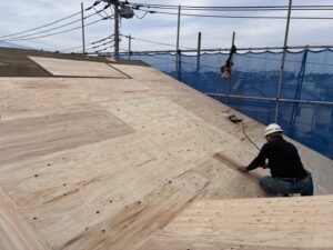 既存の屋根を撤去し、下地をしっかり補修した上で、新しい屋根を施工していきます。