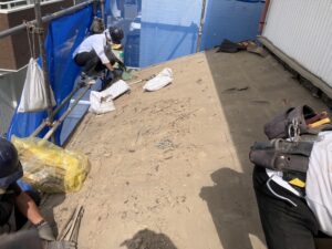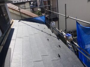 今回は屋根葺き替え工事の様子を紹介します!古い屋根材を剥がし、新しい屋根を張っていきます。