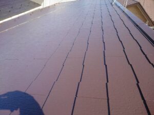 今回、屋根塗装のご依頼を連絡して頂き屋根塗装工事の方をさせて頂きました。施工前苔や汚れを落とすのに、ケレンをしていきます。今回、屋根の状態が悪く吸い込みが激しいので下塗りを2回入れさせて頂きました。下